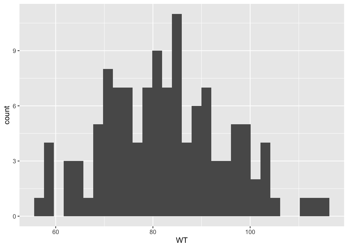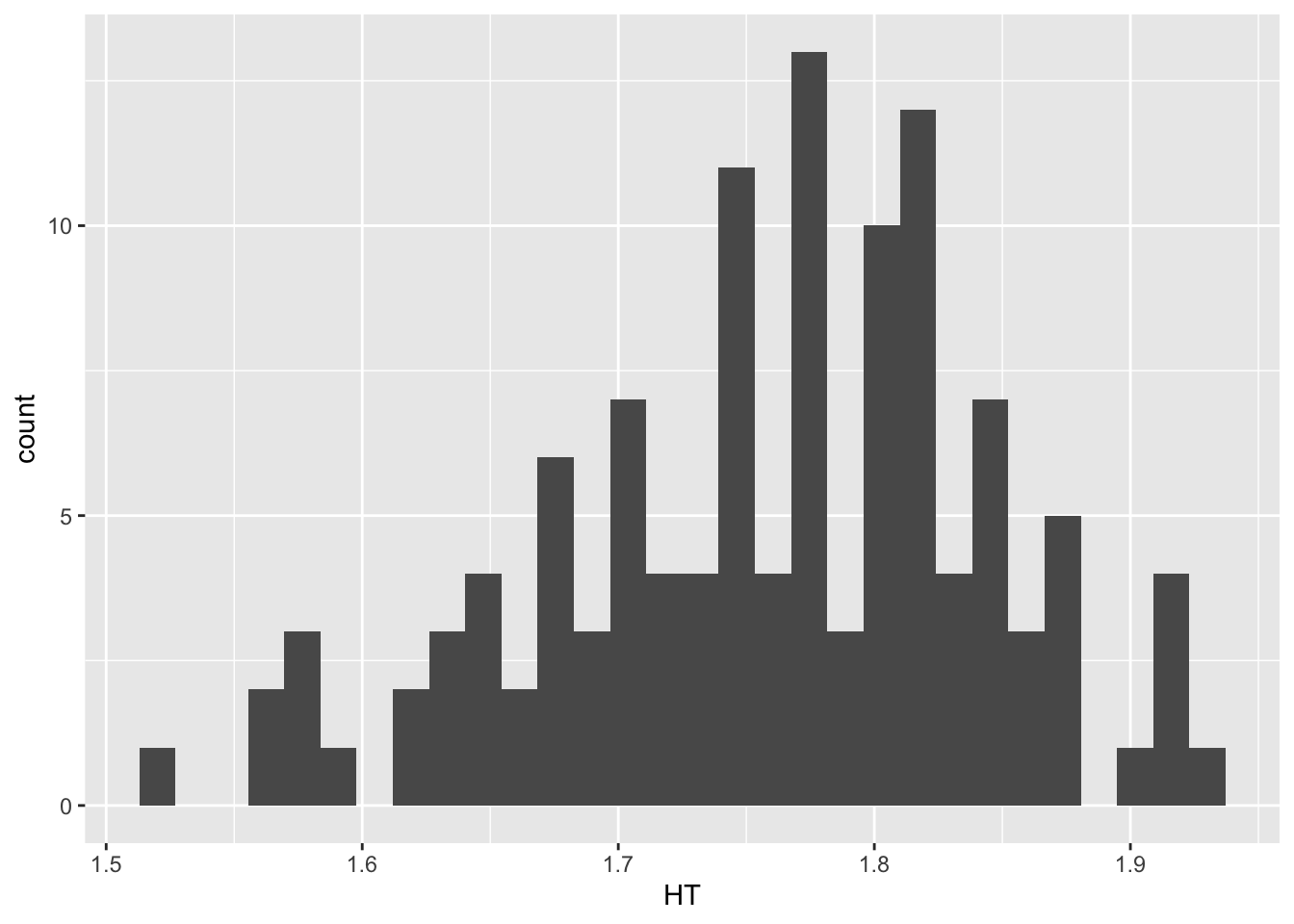 `stat_bin()` using `bins = 30`. Pick better value `binwidth`.
